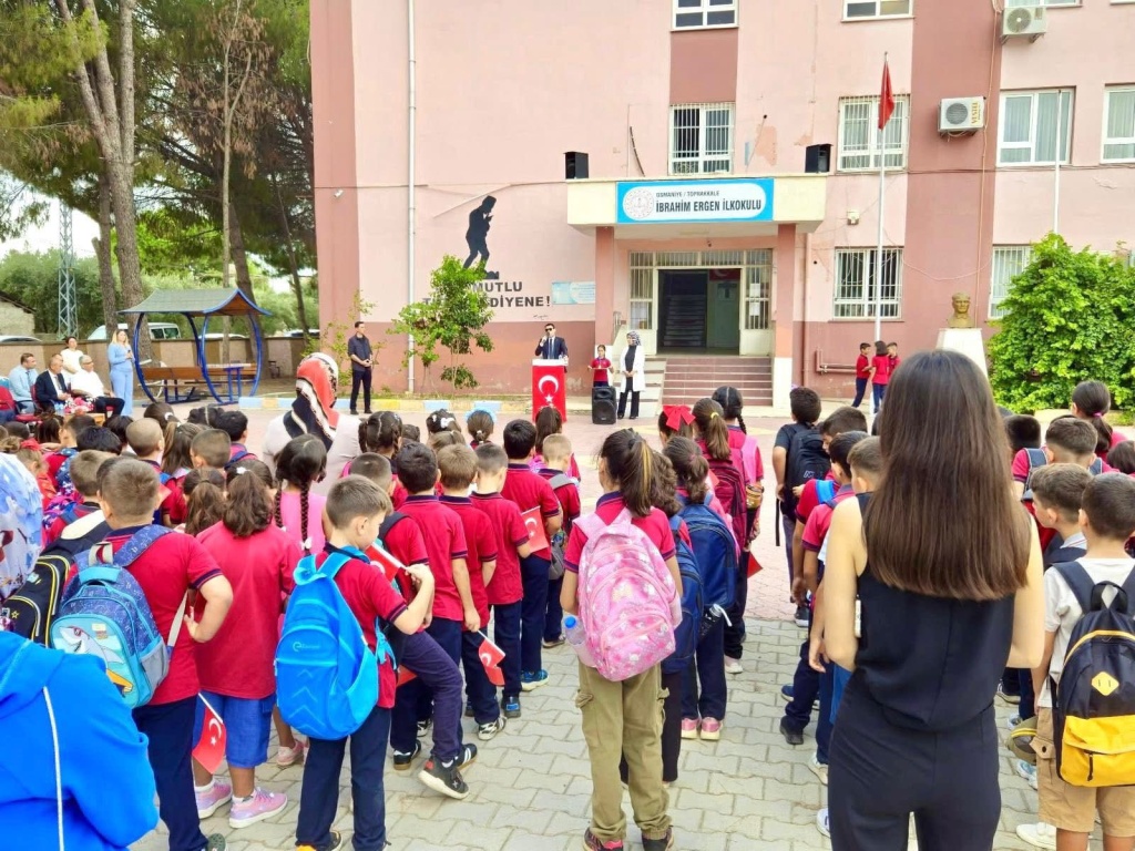 Atatürk büstüne çelenk sunulmasının ardından İlçemiz İbrahim Ergen İlkokulunda düzenlenen törene Sayın Kaymakamımız Volkan ÖZER, İlçe Milli Eğitim Müdürü Durmuş SAĞLAM, Şube Müdürleri Bilal YALÇIN ve Hüseyin KISACIKOĞLU, Okul ve Kurum Müdürleri katılım sağladı. Düzenlenen programın ardından ilk ders zilinin Sayın Kaymakamımız Volkan ÖZER tarafından çalınmasıyla öğrenciler ve öğretmenler eğitim öğretime başladılar. 2025 – 2026 Eğitim Öğretim Yılının tüm eğitim camiamıza hayırlı olmasını dileriz.